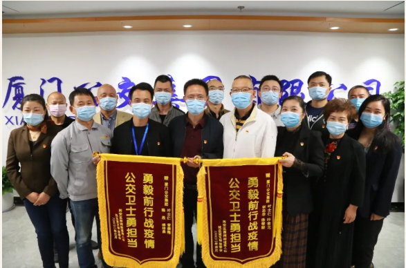 公交抗疫风采|同安美人山社区党支部书记向公交疫情防控党员先锋队赠送锦旗