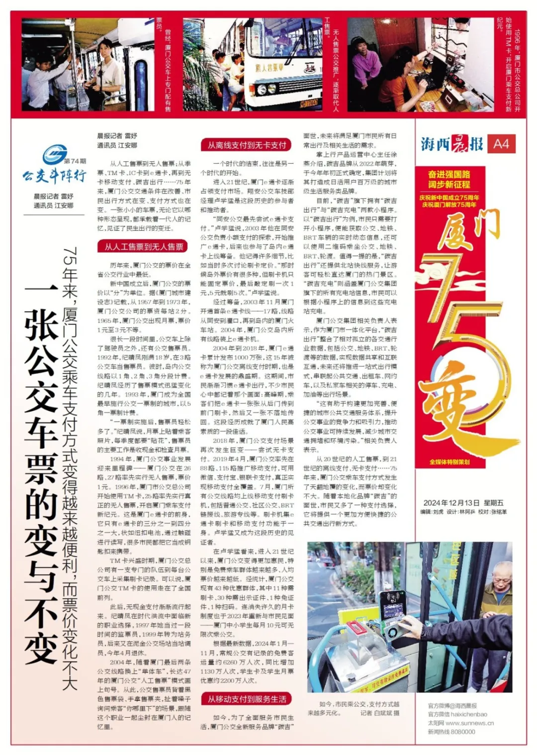 从人工售票到无人售票从季票、TM卡、IC卡到e通卡再到无卡移动支付、碳吉出行……75年来三级片 交通条件在改善市民出行方式在变支付方式也在变一张小小的车票无论它以哪种形态呈现都承载着一代人的记忆见证了…