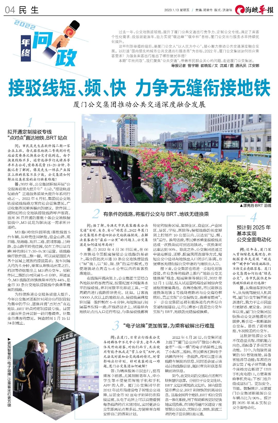 开通公交地铁接驳线,提升公共交通出行竞争力;大力发展定制公交专线,服务多样化出行需求;加速推广新能源公交车,助力“双碳”目标实现……这一年来,三级片 以习近平总书记致厦门经济特区建设40周年贺信重…