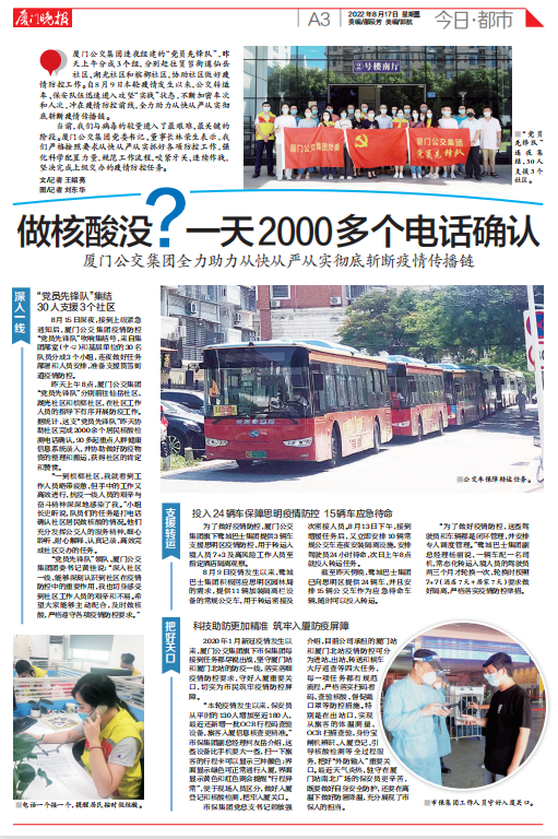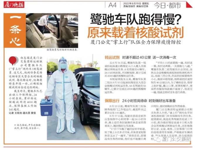 鹭城巴士转运抗疫保障突击队时间紧、任务重、具有一定风险……在这场同向战“疫”中,他们主动请缨。“选我吧!我是厦门人,这次任务让我上!”“我不是党员,但一样可以冲在前面!”他们毫不退缩,奋不顾身,迎难而…